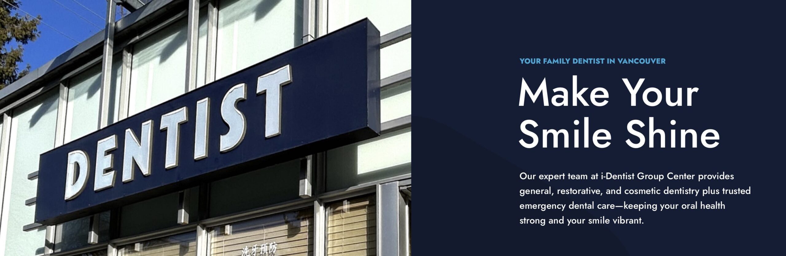 At i-Dentist Group Centre, we specialize in comprehensive services—including preventive care, cosmetic dentistry, restorative dentistry, and emergency dental care—using cutting-edge technology to deliver excellent results for patients across Vancouver.